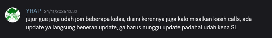 Bukan cuma kasih angka entry & target. Kamu bakal paham kenapa masuk, bagaimana menganalisa, dan kapan keluar.